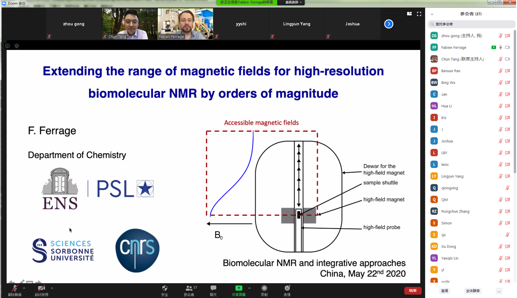5月22日晚7:30,应Ezpay唐淳研究员的邀请,法国国家科学研究中心(CNRS)Fabien Ferrage教授在线上平台做了题为“Expanding the NMR universe with sample shuttle”的学术报告。